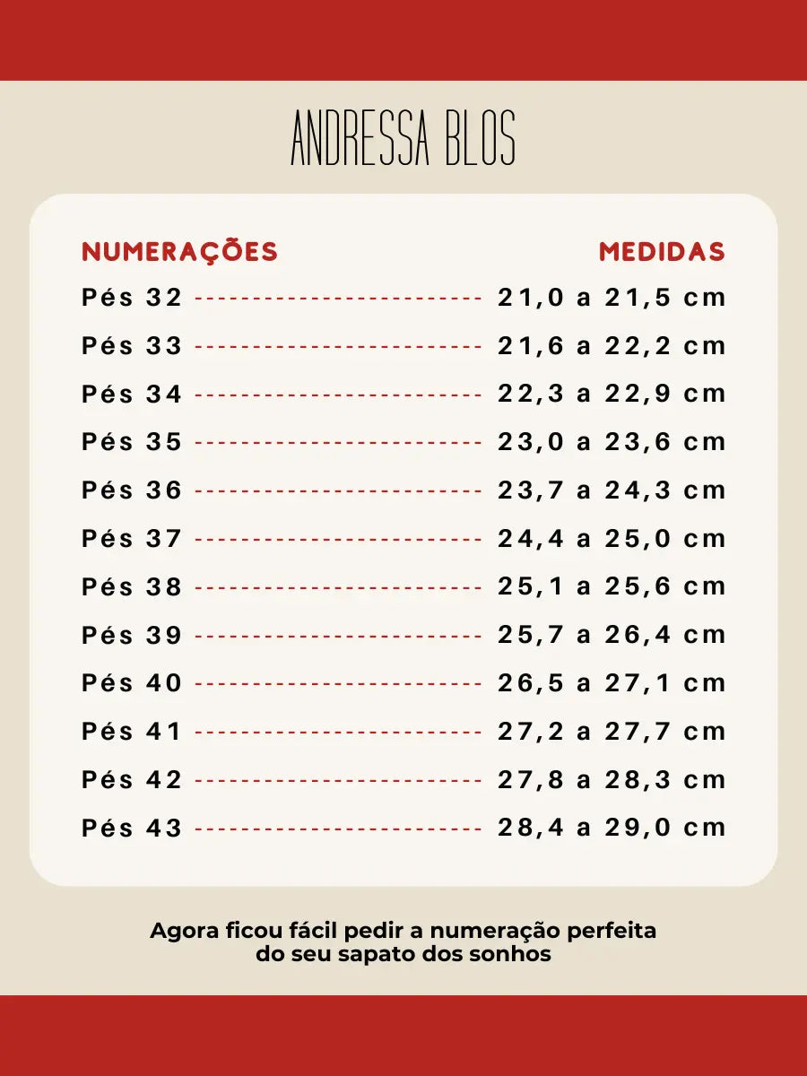 Salto: Fino (32 ao 35 – 11cm / 36 ao 37 – 11,5cm / 38 ao 43 – 12cm)